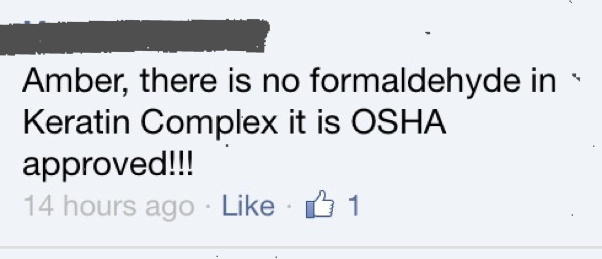 “Many are under the impression that Keratin Complex is safe or even formaldehyde free because it’s marketed as a “Natural Keratin Smoothing Treatment” and “OSHA COMPLIANT,” but this is absolutely false!