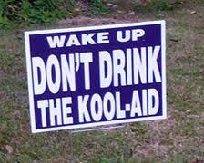 “Drinking the Kool-Aid,” according to Wikipedia, “suggests that one has mindlessly adopted the dogma of a group or leader without fully understanding the ramifications or implications.” And also, “refers to a person or group holding an unquestioned belief, argument, or philosophy without critical examination.” So this made us wonder…